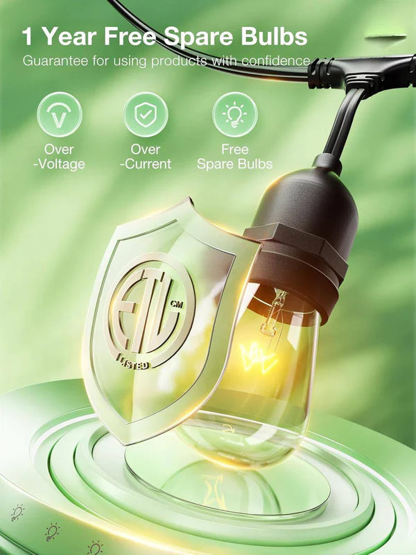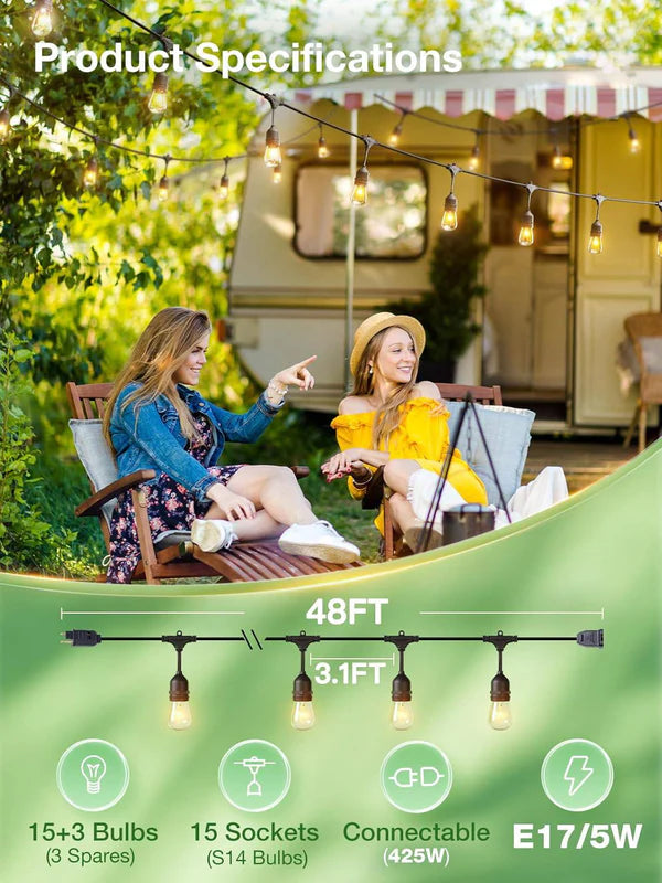 8 FT Outdoor String Lights Commercial Grade Weatherproof Strand
